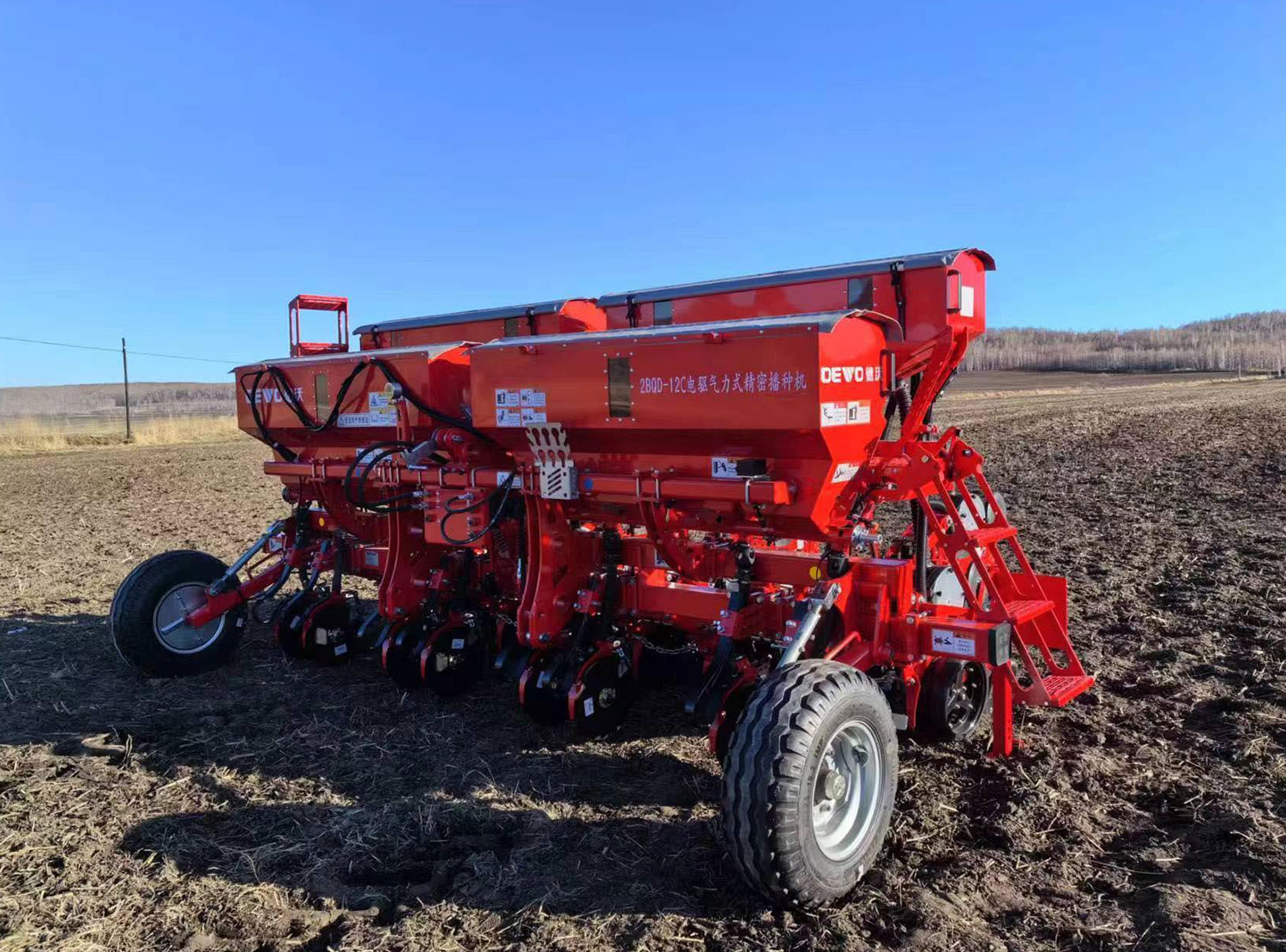 2BQD-12C型電驅氣力式精密播種機是一款電驅大田作物精密播種機械,擁有國際領先技術水平,可即時監測風壓、種子漏播重播、漏肥等現象,精準控制播種株距及電控液壓絞龍施肥,播種速度最高可達12km/h,根據不同作物的種植模式需求,可同時完成側深施肥、精密單粒播種、整理壓實種床,V型覆土鎮壓等工序。可以實現壟上兩行、三行播種模式自由切換,實現一機多用,行距株距可根據需要適時調整,可實現全天候、多種復雜地況播種作業。